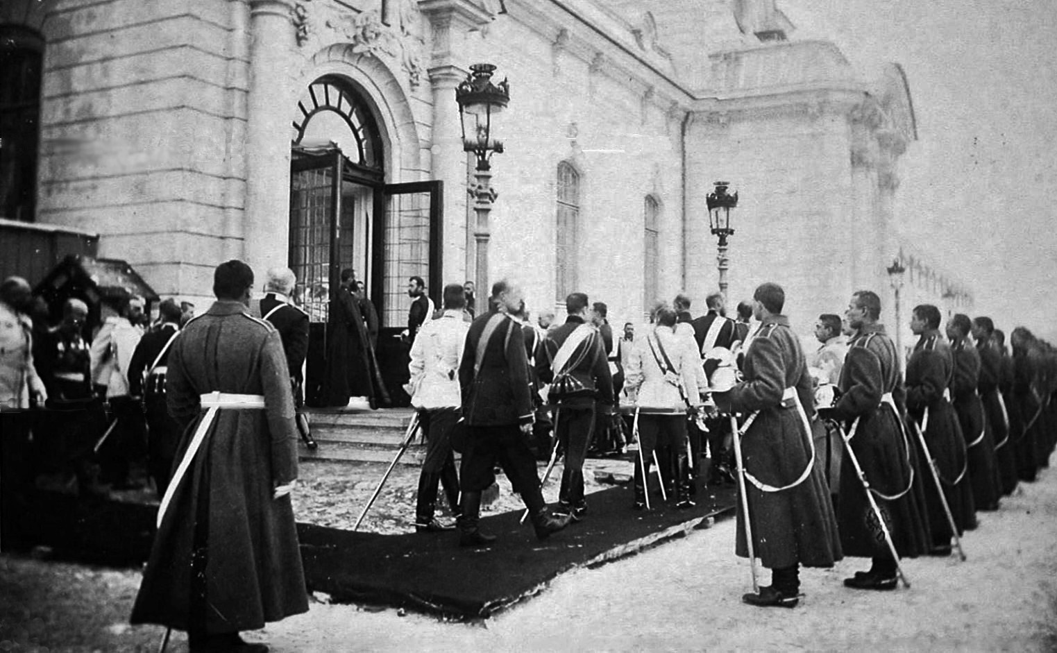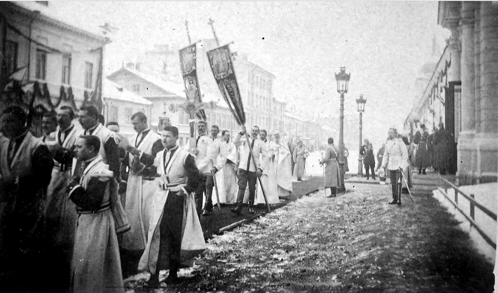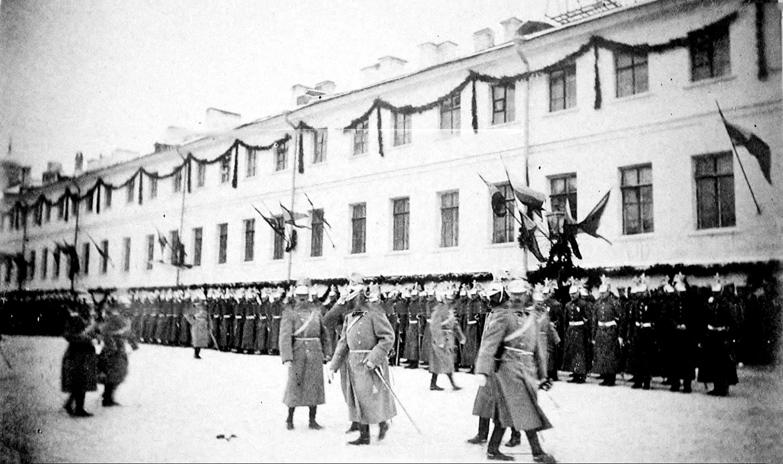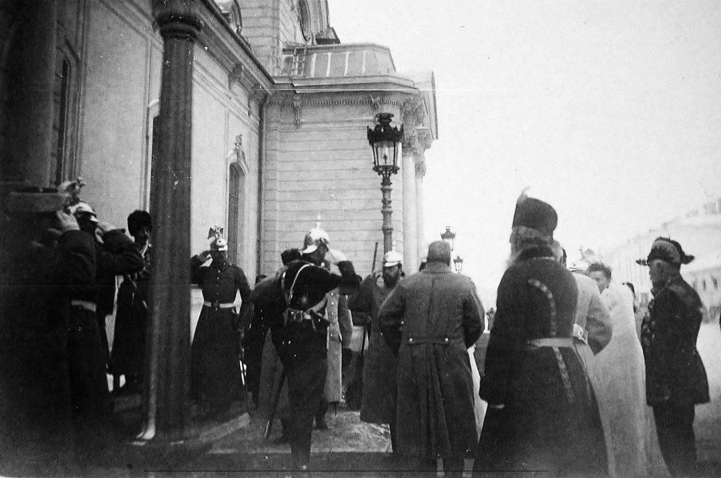 Кавалергарды на церемонии освящения полковой церкви св. Захарии и Елизаветы, состоявшейся 26 января (14 января) 1899г. после перестройки церкви по проекту арх. Л. Н. Бенуа. Фотограф - генерал-майор Насветович А.А. Cavalry guards at the consecration ceremony of the regimental church of St. Zechariah and Elizabeth, held on January 26 (January 14) 1899 after the restructuring of the church according to the project of L. N. Benoua. Photographer - Major General A.A. Nasvetevich