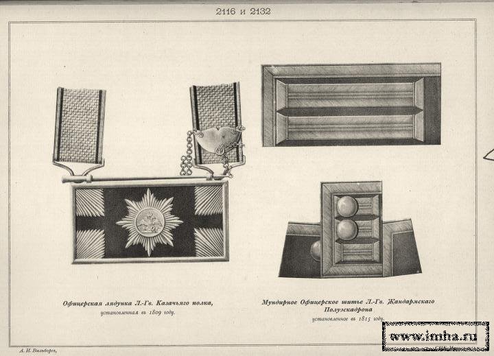 2) 22 серебряные трубы за 1813 год, с надписью: „За отличия против неприятеля в минувшую кампанию 1813 г.“. Высочайший приказ 15 Июля 1813 г. Высочайшая грамота 4 Июня 1826 г.