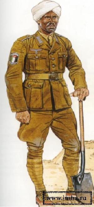 После выздоровления Фавзи эль Кокджи немцы предложили ему сотрудничество с "особым штабом Фельми", расположенном в греческом городе Сунион и занятым формированием "Германо-арабского учебного подразделения", преобразованного позднее в Легион "Свободная Аравия" (Legion Freies Arabien). Нарукавная нашивка,, носившаяся на правом рукаве мундира выше локтевого сгиба чинами этого Легиона (совершенно аналогичная государственному флагу Ирака, в знак солидарности с иракским режимом Рашида Али аль-Гайлани - и почти почти аналогичная флагу Иордании - см. илл.), изображена на приведенной выше цветной иллюстрации к данной миниатюре.