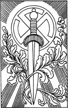 Бригадефюрер СС Виллигут (вопреки утверждениям многочисленных фальсификаторов истории, никогда не входивший в "Аненэрбе», во главе которого стоял голландский профессор Герман Вирт), утверждал, что ему известны секретные заклинания и значения рун, и использовал их в геральдических фигурах, имевшихся в его фамильном гербе. Им был также разработан дизайн знаменитого эсэсовского "тотенкопфринга» (перстня с "мертвой головой», то есть черепом, наложенным на перекрещенные кости), включавший в себя, кроме "Адамовой головы», также венок из дубовых листьев (символ отваги и единства с древнегерманских времен), руну "сиг», она-же "совуло» (сдвоенная руна "сиг» стала символом СС, наряду с "мертвой головой»), руну "гагаль» и "знак блага», "гейльсцейхен» – "вязаная (составная) руна» – сочетание сдвоенной руны "сиг» и "боевой» руны "тейваз» – символа древнегерманского бога Тюра, Тира, Тиу, Туиско, Туэско или Циу – являвшегося изначально богом-громовержцем, соответствующим родственному ему по имени древнегреческому Зиусу-Зевесу-Зевсу).![]()