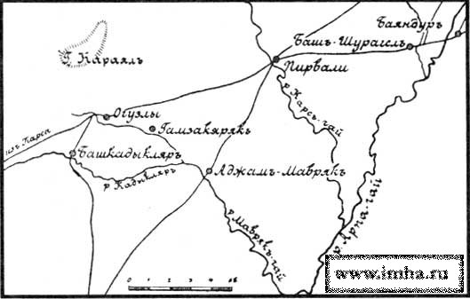 Между этими пунктами центр позиции заняли 8 таборов; на фланги высланы сильные отряды: влево 8 таборов и полк регулярной кавалерии с курдами и башибузуками, вправо— главная масса из регулярной конницы.