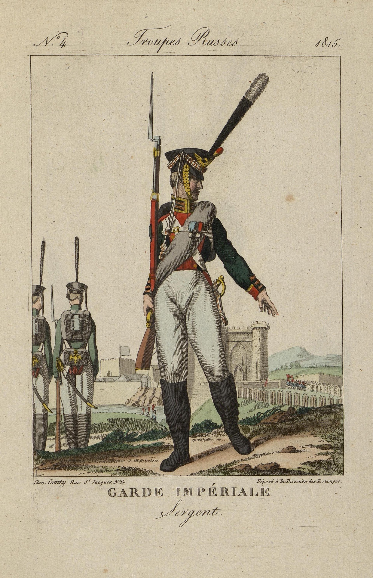 С течением времени, вследствие непрерывных войн, а также и вследствие постоянного увеличения численного состава Гвардии, условия приема стали менее строги, что понизило ее качества, но тем не менее, в 1815 г., под Ватерлоо, она еще раз доказала, что была достойна своего великого полководца.