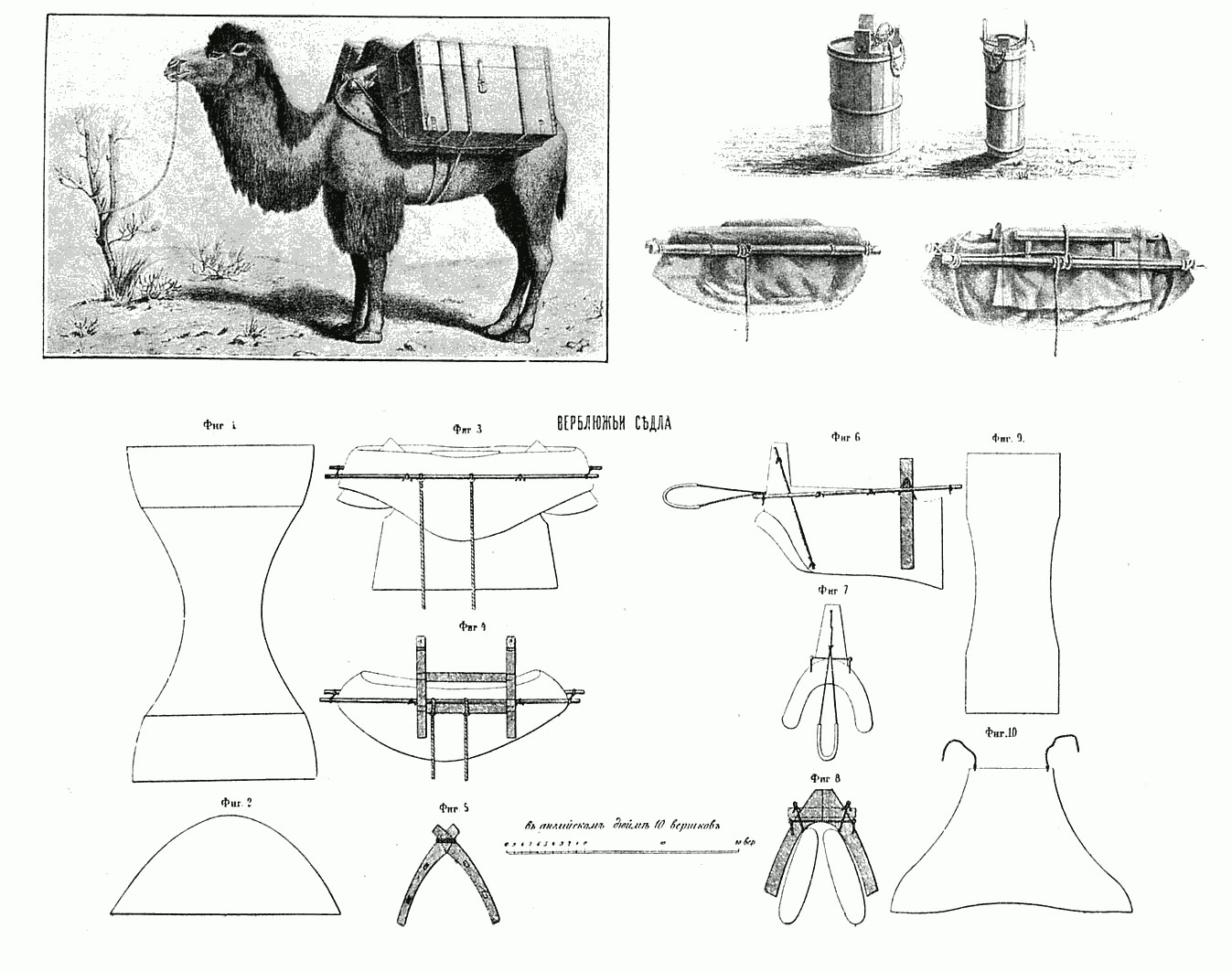 Седло для одногорбого Верблюд бывает разного устройства. Чаще встречается седло совершенно сходное с седлом для двугорбого, только для защиты горба делается особое приспособление из дерева, имеющее вид двух лесенок, боковые брусья которых несколько согнуты.