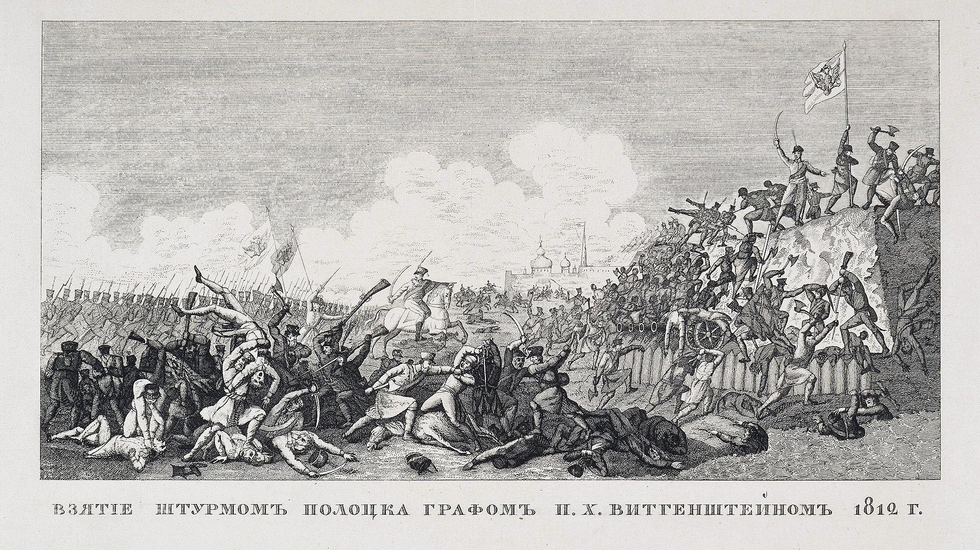 Заметив передвижение французских колонн за Двиной, он стал обстреливать усадьбу Спас со всех батарей, а начавшийся в городе пожар обнаружил совершающееся отступление французов и вызвал канонаду по Полоцк, во время которой отряд Алексеева подошел к Струйне и оттеснил войска мостов. укрепления за Двину. Частные попытки ворваться в город не приводили к успеху, и в 2 ч. ночи последовал, наконец, приказ для общего штурма. Одновременно ворвались с разных сторон Властов, Дибич и Ридигер.