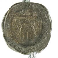 | Печать князя волоцкого Ивана Борисовича, черновосковая, вислая на голубом шелковом шнуре. Российский государственный архив древних актов Ф. 135. Государственное древлехранилище хартий и рукописей. Отд. I. Рубр. II. № 78. |