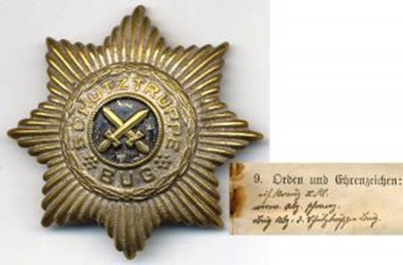 Эмблема: нагрудная 8-лучевая звезда со «штралами», типа орденской звезды к прусскому королевскому ордену Красного орла, с окаймленным наполовину лавровым, наполовину дубовым венком центральным круглым медальоном; в медальоне два скрещенных меча рукоятями вниз, обрамленные по кругу надписью с названием подразделения.