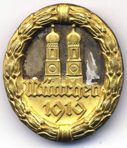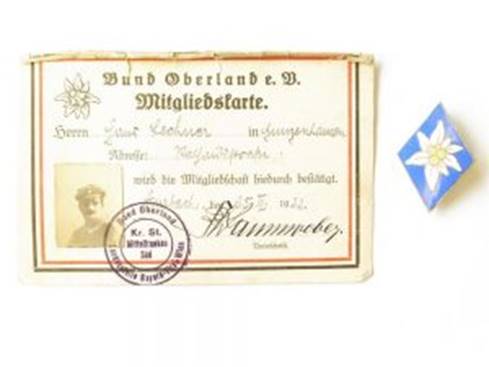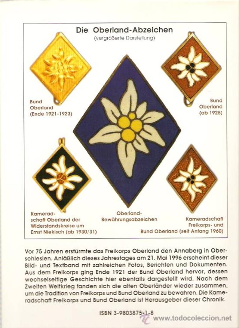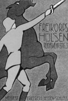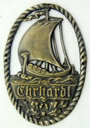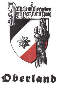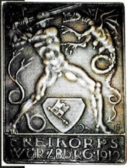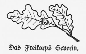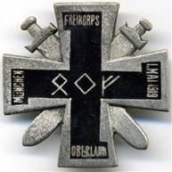Эмблема: бело-голубой (белая полоска снизу) нарукавный шеврон (цветов баварского флага) с круглой печатью фрайкора.