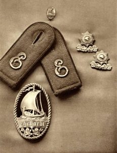 Эмблема: овальный нарукавный знак в форме двух скрещенных мечей остриями вверх над заглавной буквой «Т (Tschirdewitz)», обрамленный дубовым венком.