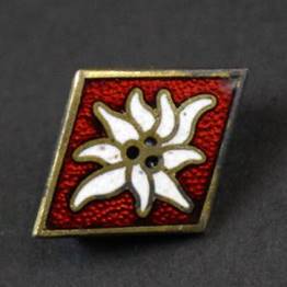 Эмблема: шитые петличные знаки в форме белого цветка эдельвейса (без стебля и листьев) с желтой сердцевиной.