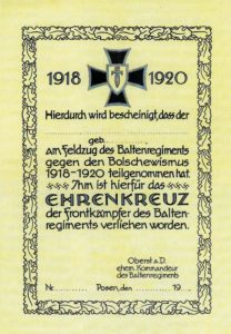участие в мировой войне или в послевоенной борьбе, дозволены к ношению только: Железный Роланд, Силезский знак за заслуги (Силезский орел) и Балтийский крест. Все остальные знаки, как-то: Фландрский крест, Лангемаркский крест, правительственные памятные кресты, знаки пограничной охраны и добровольческих корпусов, полевой знак почета, боевой щит и т.д. носить не дозволяется.