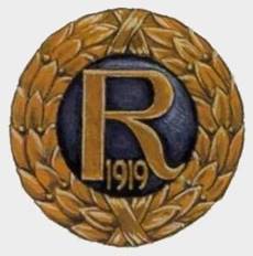 Эмблема: круглый нарукавный знак желтого металла в форме латинской буквы «R» с датой «1919» под буквой, оплетенной лавровым венком, переплетенным лентами вверху и внизу.