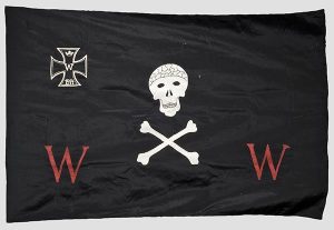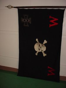 Эмблема: белая нашивка в форме расположенного по горизонтали прямоугольника на левом рукаве ниже локтя; знамя – черное квадратное полотнище с изображением прусского Железного креста, обрамленного сверху дугообразной надписью белыми готическими буквами «Лучше мертвый, чем раб!» (Lieber tot als Sklav!).