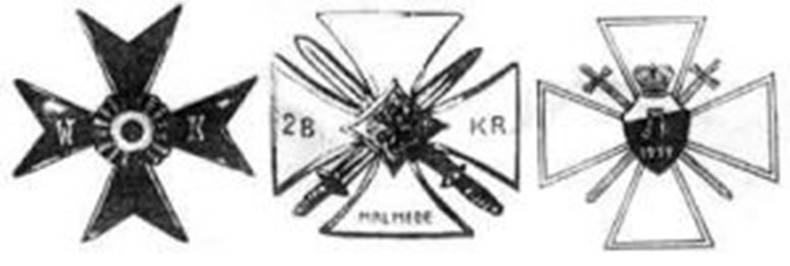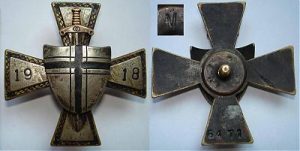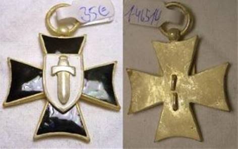 Эмблема: белый равносторонний матерчатый крест, носившийся на левом плече.