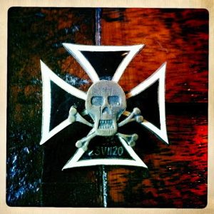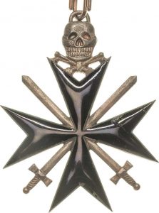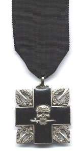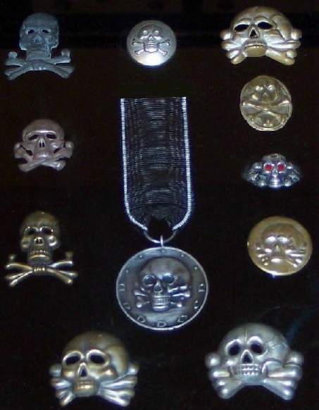 Эмблема: металлические петличные знаки в форме черепа с костями «брауншвейгского типа».