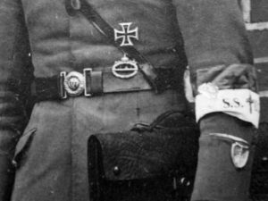 Эмблема 1-й роты батальона: черная манжетная лента с надписью белыми латинскими печатными буквами «Вервольф» («Вурдалак», или «Оборотень»).