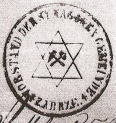 Эмблема: круглые петличные знаки с изображением кирки горняка и 2 шестиконечных звезд (символика силезских горняков).