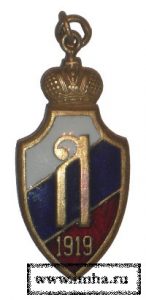 Эмблема: овальный знак с изображением городской площади с ратушей, окаймленный лавровым венком; в нижней части знака – название подразделения и дата: «март 1920».