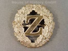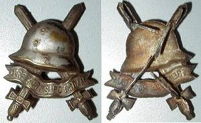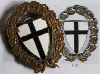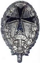 Эмблема: петличный знак в форме германской армейской каски (стального шлема), увенчанной дубовым венком.