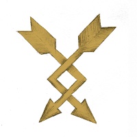 Эмблема: петличные знаки в форме 2-х оперенных стрел остриями вниз, перекрещенных наподобие древней германской руны «Одал (Отилиа)».