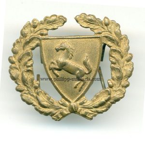 Эмблема: металлические петличные знаки в форме овального баварского гербового щита (с «ромбами»), наложенного на сосновую ветвь с 2 шишками.