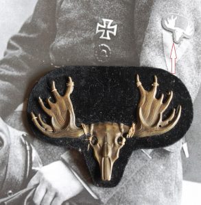 Эмблемы: кокарда в виде металлической «мертвой головы» анфас («брауншвейгского» типа); нарукавный знак в виде оленьего черепа с крестом, окруженным сиянием, между рогами, обрамленным снизу дубовым венком.