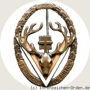 Эмблема: череп «оленя Святого Губерта» с крестом между рогами, наложенный на черно-бело-красный шеврон углом вниз, окаймленный дубовым венком, с датой основания фрайкора (10.12.1918) вверху и названием добровольческого корпуса внизу венка.