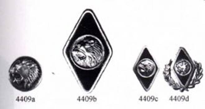Эмблема: петличные знаки в форме горизонтально расположенного овального медальона с выгравированной волчьей головой в профиль.