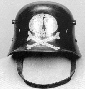 Эмблема: овальный нарукавный знак в виде «мертвой (адамовой) головы» (черепа с костями) «прусского типа» на черном фоне.