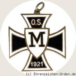 Эмблема – бело-желтая нарукавная повязка с 2 черными шестиконечными звездами (элементы геральдики Силезии) на желтой верхней полосе, между звездами – черный короткий меч (кинжал) рукоятью вниз, на нижней (белой) полосе, справа от кинжала — аббревиатура черными латинскими буквами S.S., слева — O.S., то есть «Самооборона Верхней Силезии».