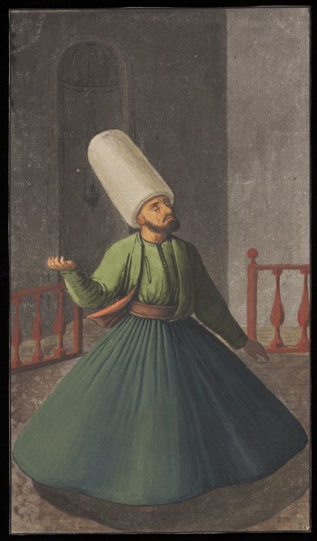 • Обряды суфийского ордена Мевлеви представляют собой довольно сложный ритуал. Он состоит из декламации стиха во славу пророка Мухаммеда, музыкальных импровизаций и исполнения «вертящегося» танца, за этим идет 2-я часть из 4 музыкальных и танцевальных разделов, именуемых селам, которые завершаются инструментальной музыкой и рецитацией Корана вместе с творением молитв. Дервиши ордена Мевлеви («танцующие дервиши» или «кружащиеся дервиши») появляются в белых продолговатых колпаках из войлока, имеющих среднеазиатское происхождение, и с черными накидками; эти накидки сбрасываются во время танца, и дервиши предстают в белых одеяниях (любопытно, что черный и белый - цвета ордена храмовников-тамплиеров - в частности, их щитов и орденского знамени «Босеан»). Такая смена одежд истолковывается как смерть и воскресение. При вращении (кручении) дервиш держит правую руку обращенной к небу, а левую — к земле. Движения поначалу медленные и величавые с постепенным ускорением в такт музыке, но никогда они не становятся бесконтрольными.