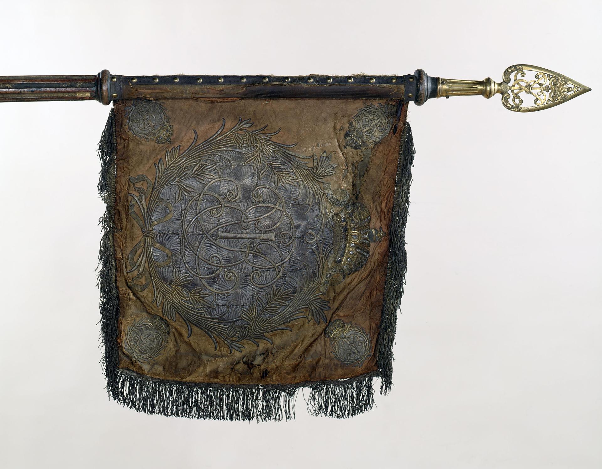 | Штандарт эскадронный Конной Гвардии. Россия, 1742 г. Шелк, металлическая нить. Шитье. 52х58,5 см |
