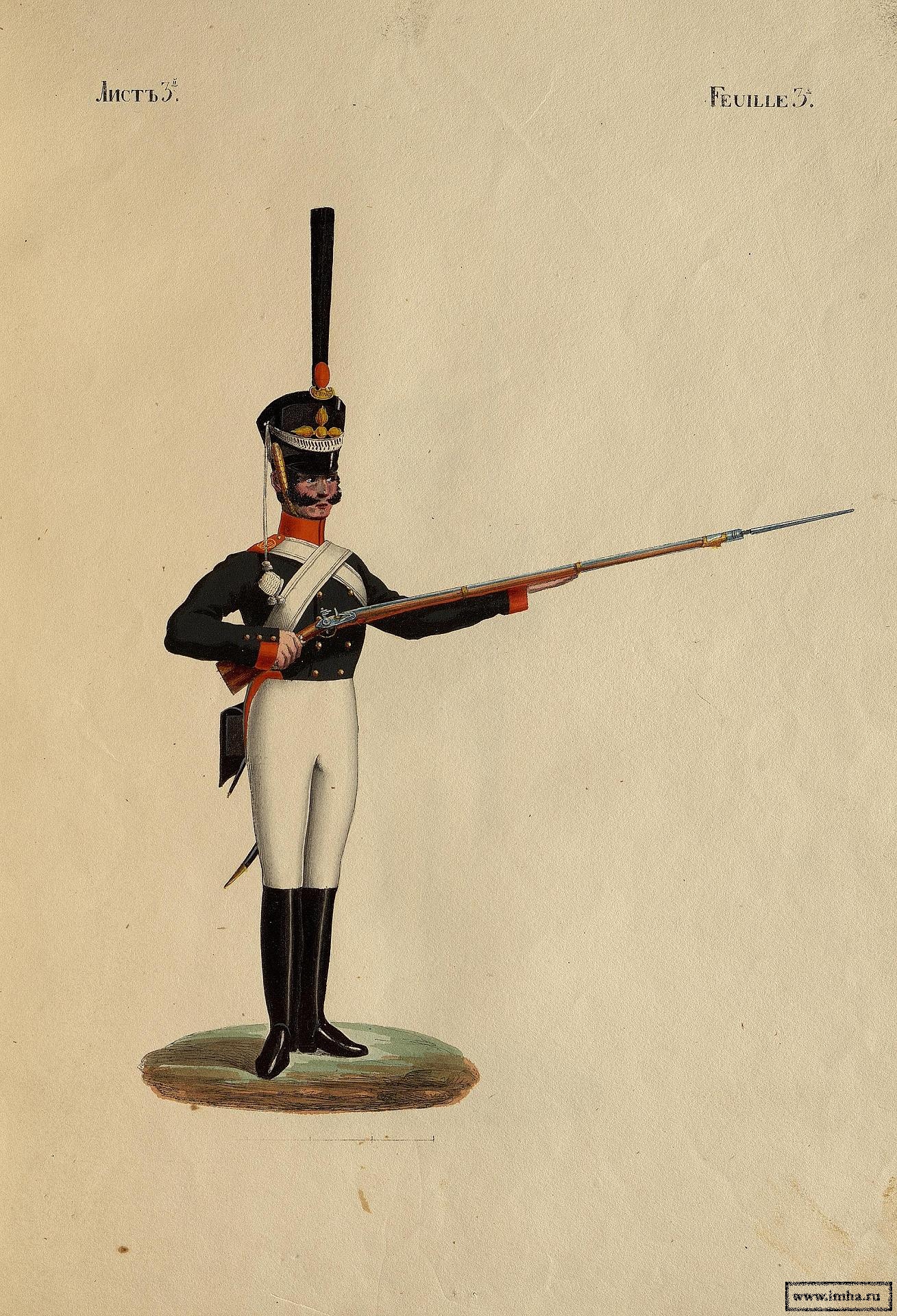 | Гренадер пехотного принца Вильгельма Прусского полка (перехват ружья после закрытия полки). Россия, Санкт-Петербург, 1823 г. |
