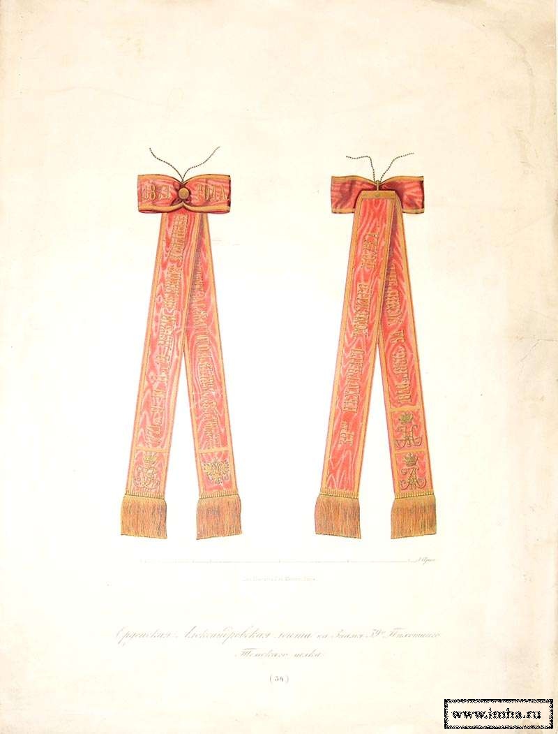 2) Знаки на головные уборы, с надписью: "За отличие», пожалованные полку 6 Апреля 1830 г., за Турецкую войну 1828-1829 годов, во всех 4-х батальонах.