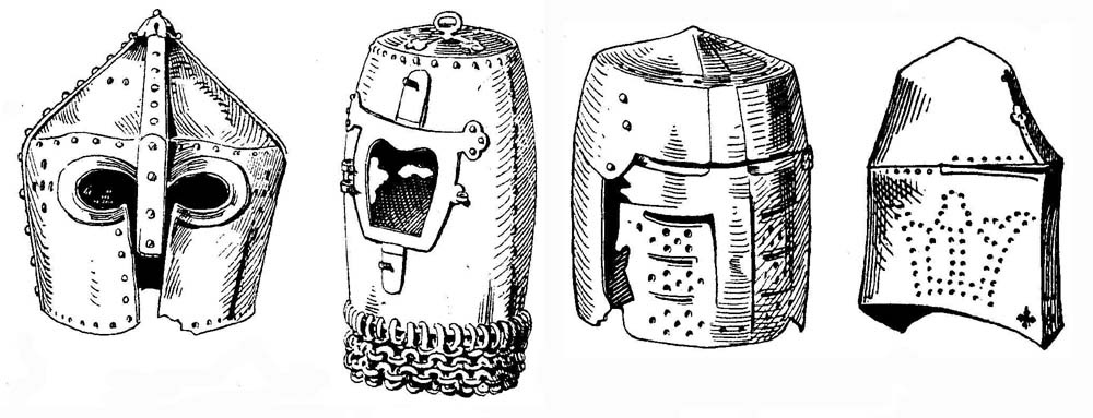 В конце XIII века черепник вместе с бармицей мог показаться кому-то достаточным для защиты, но горшковый шлем времен крестовых походов стал гордостью рыцаря, его постоянным знаком отличия от простого наемного солдата или оруженосца, носившего простые железные колпаки. Многие, главным образом пожилые, рыцари носили поверх черепника кожаный горшковый шлем, усиленный металлическими накладками. Рыцари невыносимо страдали под тяжестью огромного горшкового шлема и стремились перенести опору с макушки головы на другую точку.