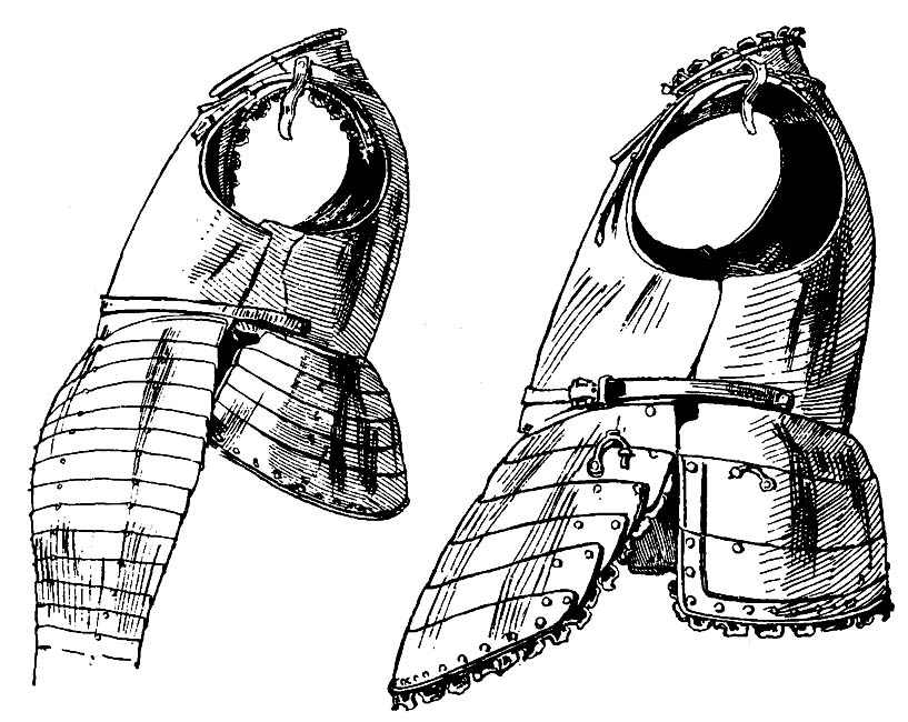 1)Автор имеет в виду два типа доспехов, носящих в русском языке названия: бахтерец, состоящий из мелких четырехугольных пластин, соединенных кольчугой, и юшман, состоящий из более крупных прямоугольных пластин (прим. ред.).