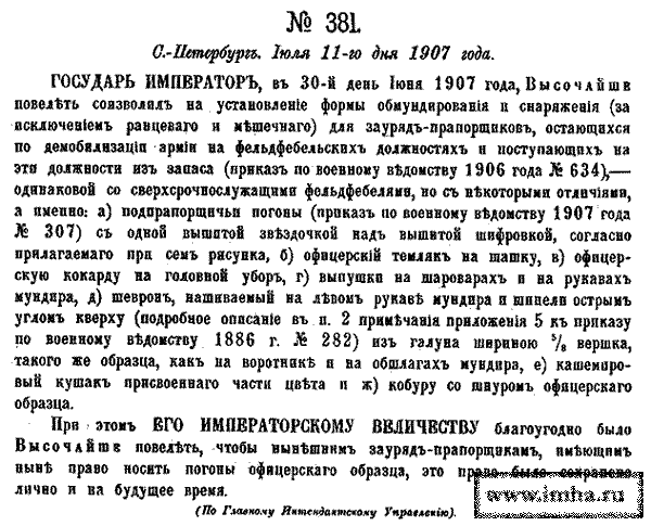 | Приказ по Интендантскому ведомсту о погонах Зауряд-прапорщика | |