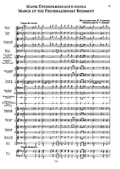 Музыка "Преображенского марша» создана еще при жизни Петра I, по всей видимости, одним из военных капельмейстеров, став первым и самым популярным маршем. К концу XIX века он стал главным маршем уже не только знаменитого Преображенского полка, шефами которого были все российские Императоры, но и всей русской армии. После февраля 1917 года его стали исполнять как гимн вместо "Боже, Царя храни!» После Октября 1917 года его упразднили, но в Добровольческой армии "Преображенский марш» продолжал оставаться гимном.