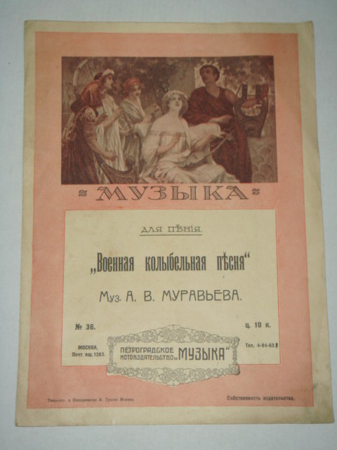 Музыка А.Муравьева. М. Петроградское Нотоиздательство ` Музыка ` 191?г. 4 стр., илл. Мягкая издательская обложка. Обычный формат.