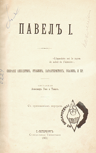 Название статьи: Павел I: Собрание анекдотов, отзывов, характеристик, указов и пр.