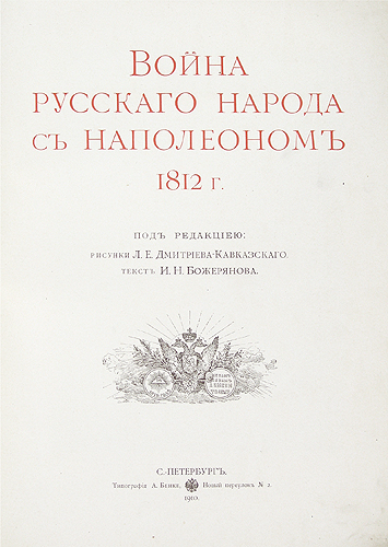 Настоящее издание "Война русского народа с Наполеоном 1812г." посвящено ходу войны и победам русского оружия над величайшей армией Европы. Повествование сопровождается большим количеством иллюстраций в тексте и на отдельных листах. Оригиналы для репродукций взяты с редких гравюр и картин начала XIX века и живописных произведений лучших русских мастеров живописи из собрания Эрмитажа и других крупнейших коллекций. Среди них большое количество портретов выдающихся политиков, военных, и, конечно же, монархов, центральное место среди которых занимают Александр I и Наполеон. В издании представлены факсимиле любопытных документов, имеющих значение для понимания хода войны.