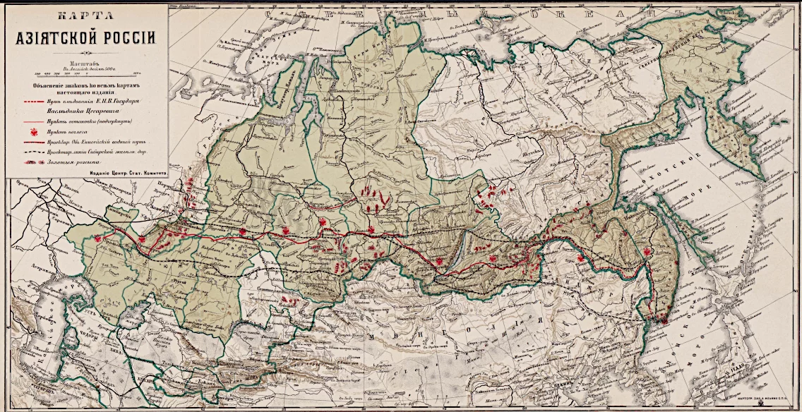 Карта путешествия Цесаревича по Российской империи в 1981 г.