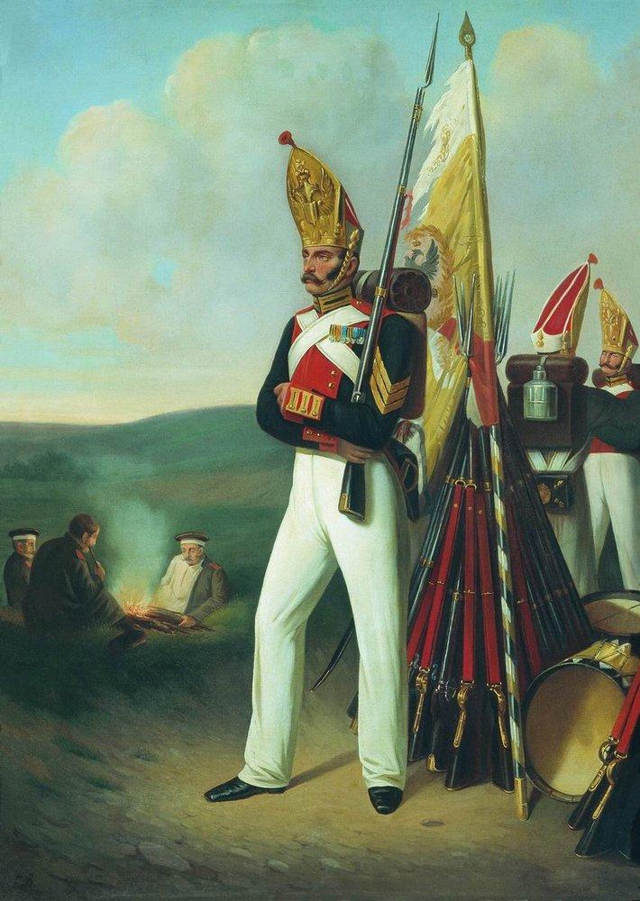 Рядовой лейб-гвардии Павловского полка. ВИЛЛЕВАЛЬДЕ Богдан (Готфрид) Павлович. 1840-е. Холст, масло. Государственный мемориальный музей имени А.В.Суворова, Санкт-Петербург.
