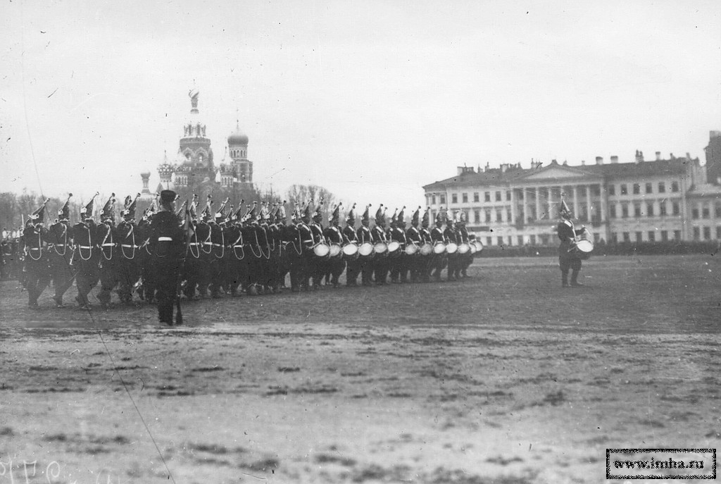 | Майские парады войск Петербургского гарнизона на Марсовом поле, 1903-1907, проход Лейб-Гвардии Павловского полка |