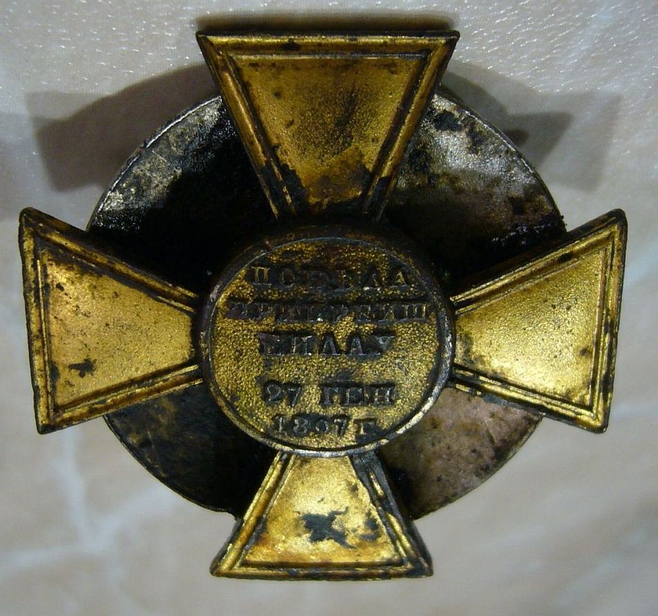 3) Знаки на головные уборы, с надписью: „За Горный Дубняк октября 1877 года", пожалованы 30 Сентября 1873 г. в командование Генерал-Адъютанта Полковника Шмидта.