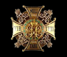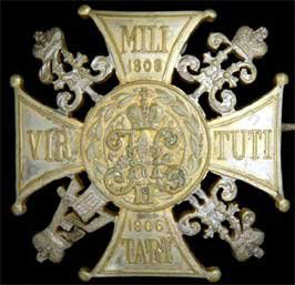 | Знак имеет форму золотого креста ордена "Virtuti Militari». На лучах креста надписи и даты "1806» и "1906». Между лучами креста расположены серебряные вензели Императоров Александра I, Николая I, Александра II и Александра III, увенчанные Императорскими коронами. В центре креста серебряный диск с одноглавым орлом, поверх которого наложен вензель Императора Николая II. Бронза, серебро, позолота, эмаль, толстый кант: "1806» и "1906» выполненны эмалью черного цвета. Для нижних чинов. Позолоченная бронза, без эмали. Диаметр– 40 мм. |