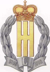 Серебряный венок из лавровых ветвей, перевязанных внизу серебряной лентой с выпуклыми серебряными датами «1856» и «1906» и серебряной римской цифрой «L». Badge in memory of the 50th anniversary of the patronage of His Imperial Highness Grand Duke Nikolai Nikolaevich of the Life-Guards Litovsky Regiment.Silver wreath of laurel branches bound at the base by a silver ribbon with raised silver dates «1856» and «1906», and the Roman numeral «L» also in silver. Inside the wreath is the gold cypher of the Grand Duke Nikolai Nikolaevich beneath the gold Grand Dukes Crown. |