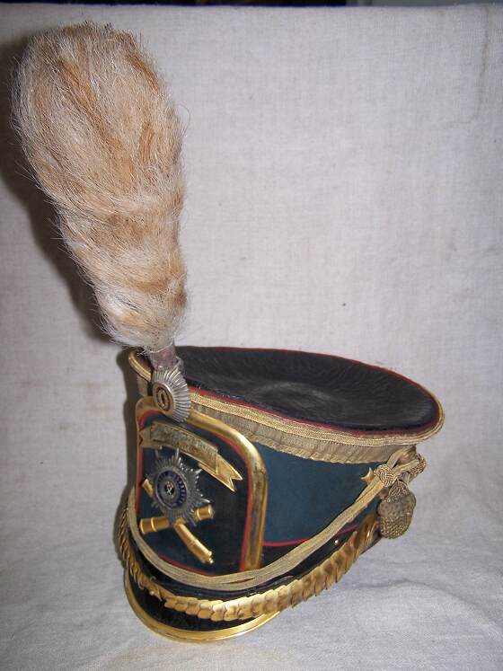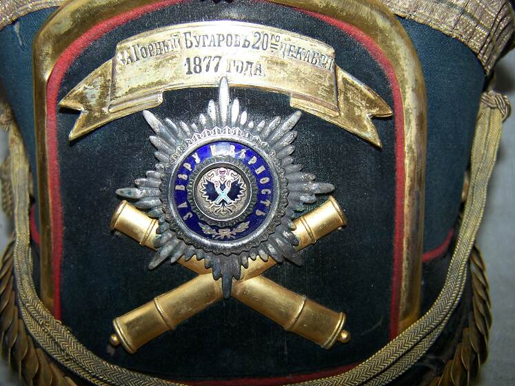 Кивер офицера Гвардейской Конно-Артиллерийской бригады, начало 20-го века. Знак "За Горный Бугаров, 20 Декабря 1877 года" |