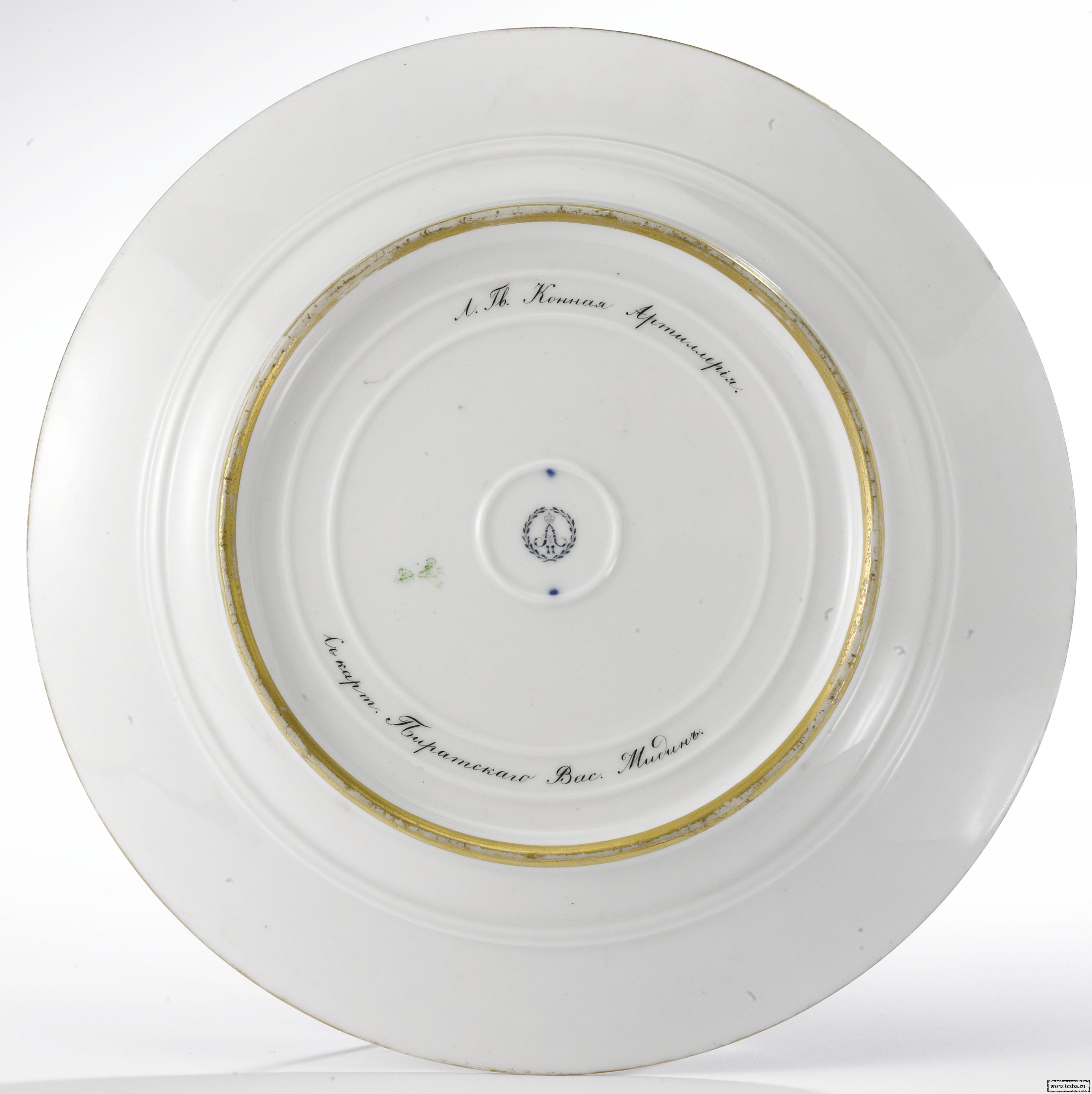 Группа гвардейских конно-артилеристов императора Александра II. Русский Императорский фарфоровой завод. Военный сервиз. 4.8 см. С картины Пиратского выполнено Василием Мидиным. |