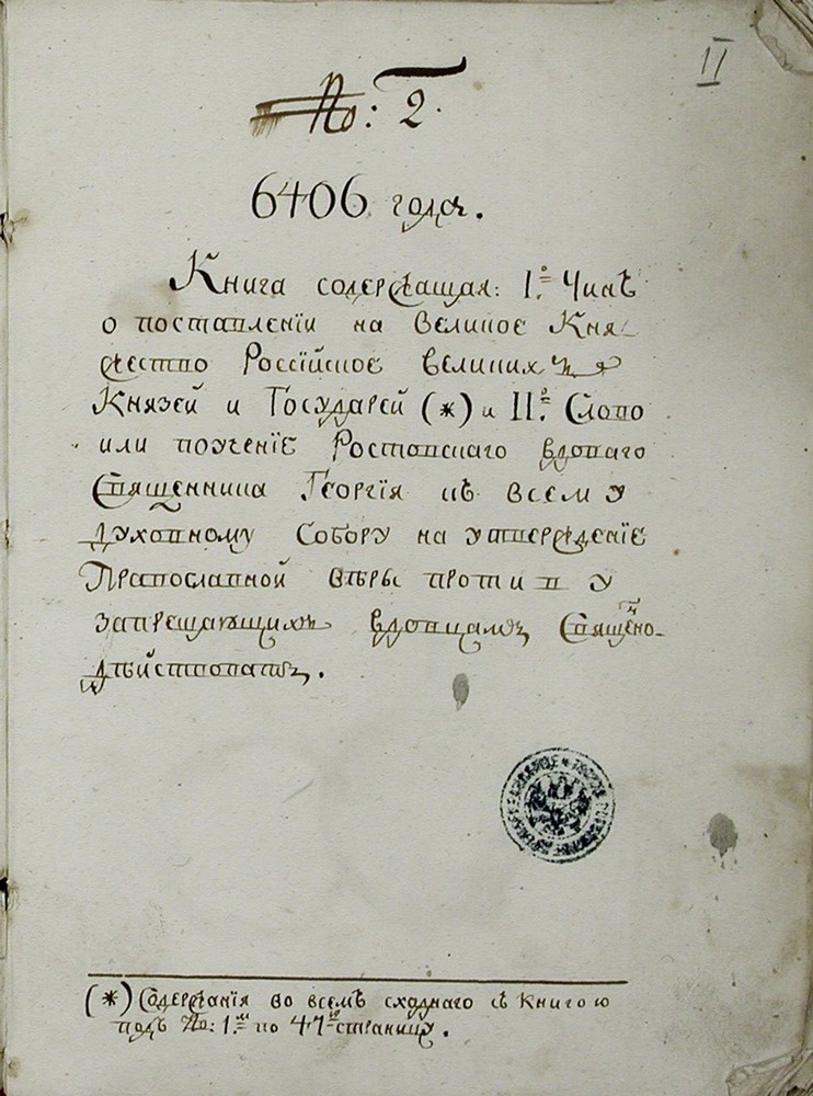 Российский государственный архив древних актов. Ф. 196. Оп. 1. Кн. 781. Л. 1–441.