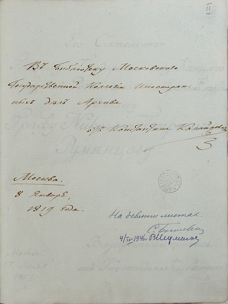 Российский государственный архив древних актов. Ф. 135. Государственное древлехранилище хартий и рукописей. Отд. V. Рубр. I. № 1. Л. 1–9.
